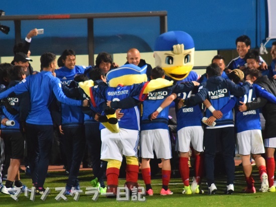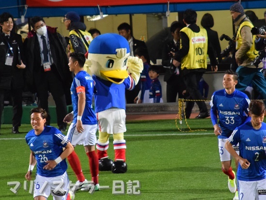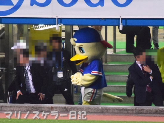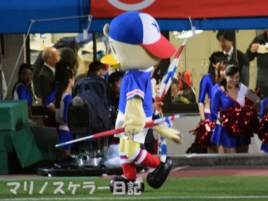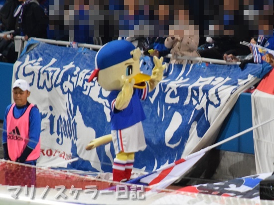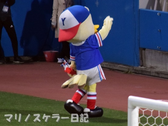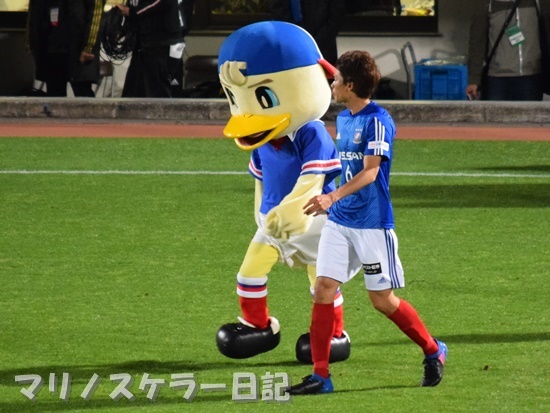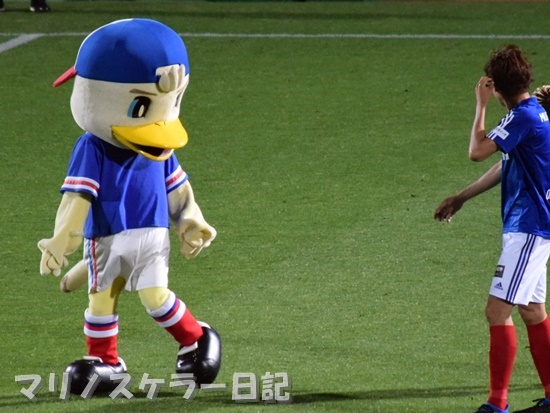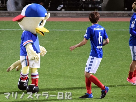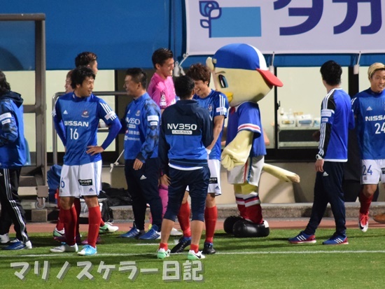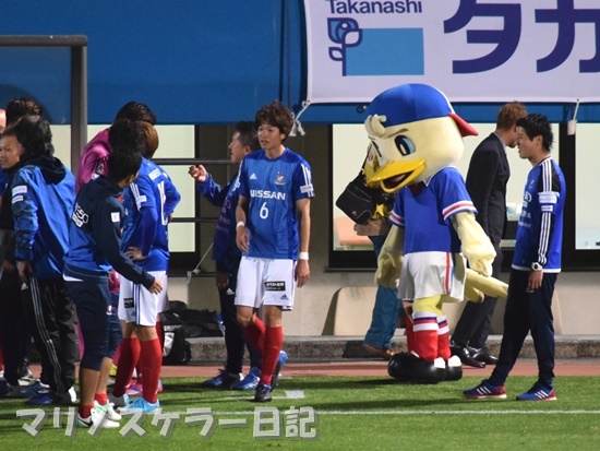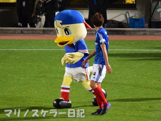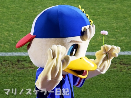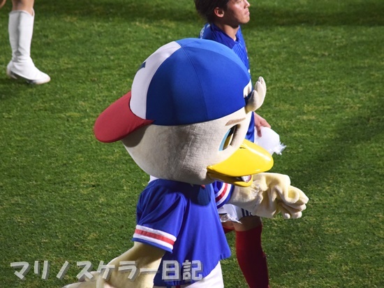 勝利しないと出てこないマリノスケもホイッスルと同時にスタンバイ。